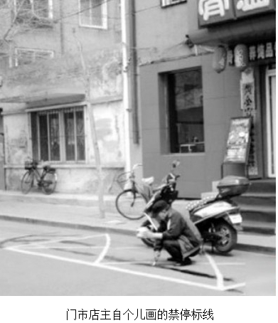 交通標(biāo)線一般都由交警部門來施畫,不過這個(gè)門市店主膽兒可挺大,愣是把店前的停車標(biāo)線,自個(gè)DIY成禁停標(biāo)線,還挺像那么回事。有的人看到后,覺得挺專業(yè)的,可以以假亂真。不相信,那么你也來看一看啊!