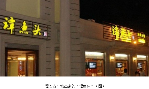 “慢慢的開始有了連鎖經(jīng)營(yíng)的概念。”譚長(zhǎng)安說(shuō)道,“我認(rèn)為我最成功的地方在于,表面上看‘譚魚頭’是在開店,其實(shí)我們是在把無(wú)形資產(chǎn)資本化。在北京開店時(shí),我沒(méi)出一分錢,我?guī)е业亩拱辍⒄伊艘粠娃r(nóng)民娃娃帶到了北京。我建立了一種連鎖加盟的模式,不需要出一分錢就可以占有35%到55%的股份。同時(shí),在一個(gè)‘吃味道’的年代,我抓住了機(jī)會(huì)。”