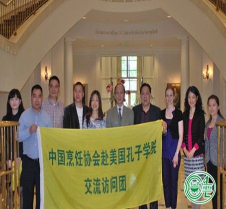 美國東部時間4月17日,由中國烹飪協會組織的中國烹飪技藝交流訪問團應邀到訪位于美國羅利市的北卡羅來納州州立大學孔子學院,受到了院長李百煉教授和副院長安娜女士以及學院師生的熱烈歡迎和熱情接待。這是自2011年國家漢辦將中國烹飪列入孔院課程后,中國烹飪協會首次組織的交流嘗試活動,也是今后在孔子學院設置中國烹飪課程及解決師資和教材等方面問題的一次有益探索。
