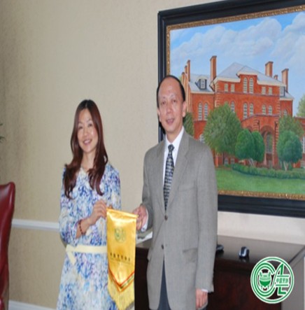 訪問團一行參觀了北卡羅來納州州立大學,并與李百煉教授和安娜女士進行了親切的交流,李百煉教授向代表團伍紫群團長表達了學校希望以此為開端,與中國烹飪協會建立長期烹飪技藝交流機制和相關的課程設置的愿望,伍紫群團長向李百煉教授贈送了中國烹飪協會會旗和《舌尖上的中國》影音資料,并表達了共同推動中華美食海外推廣的美好愿景。