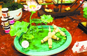 記者在第十二屆中關村國際美食節現場看到,金源新燕莎MALL二層的共享大廳內,有來自知名品牌的餐飲企業,展出了20余臺美妙絕倫的食雕面藝美食展,成為美食節開幕式現場亮麗的風景線。