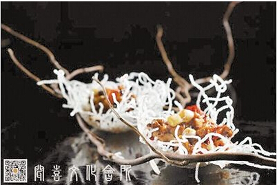 比如,一道名叫玉樹后庭花的菜,其實就是宮保豆腐,造型非常優美,將宮保豆腐裝在像是樹枝的丫上,每個丫上還有一個雪白的類似鳥巢的盛器,看起來晶瑩剔透。