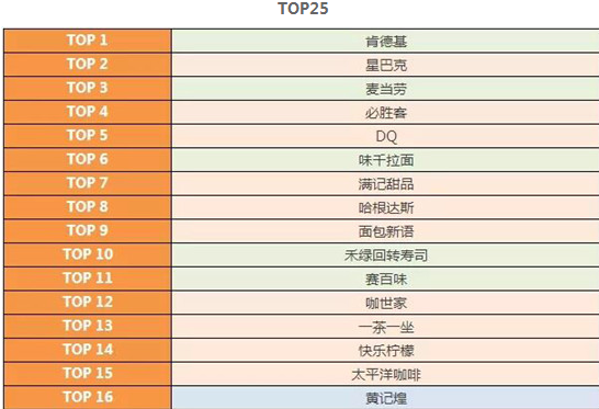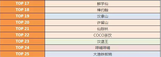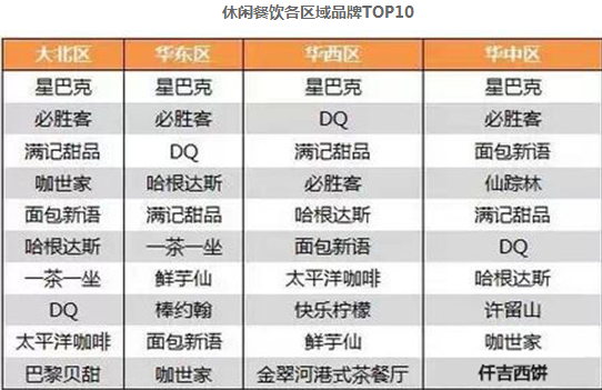 休閑餐飲各區域品牌TOP10