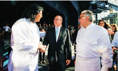 2012年11月的某一天,摩納哥路易十五餐廳里聚集了240位來自世界各地的名廚,這些廚師總共擁有300顆米其林星星,全部是擁有著“世界御廚”美譽的法國頂級大廚Alain Ducasse的邀請,來參加Alain Ducasse集團25周年慶典。大董是其中唯一一位華人廚師,合影時主辦方特意將他安排在最前排。