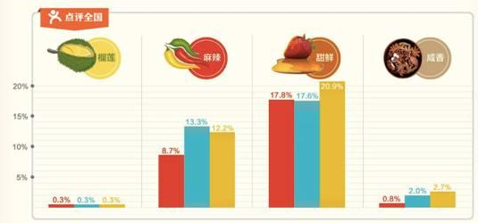 《中國餐飲報告(白皮書2017)》的最新數據顯示:2016年,甜鮮口感的受歡迎程度已經小勝麻辣這一記憶度最高的口感。