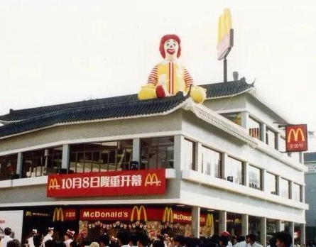 圖:1990年麥當勞在深圳開出中國第一家門店的照片。據悉,由于太過火爆,當天深圳餐廳還從香港緊急調來了500多名員工幫忙。