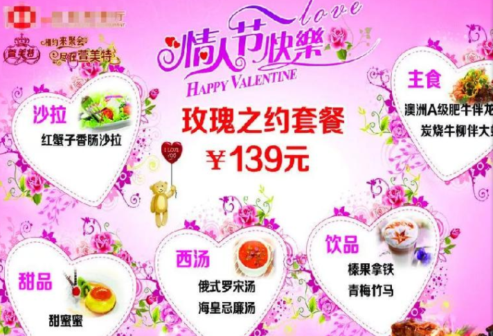 在情人節期間,餐廳可以推出情人節專屬套餐。